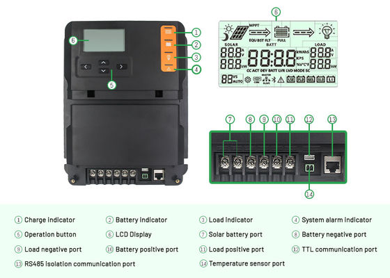 | সর্বোচ্চ সৌর বিদ্যুতের ইনপুট | 520W/12V, 1040W/24V |