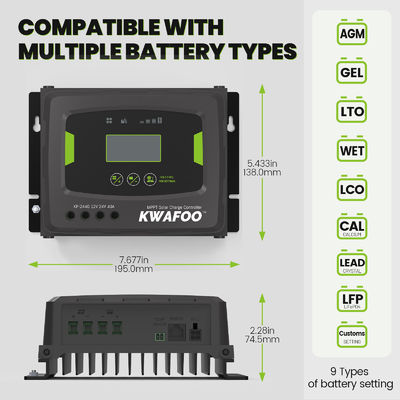 KWAFOO 40Amp MPPT সোলার কন্ট্রোলারটি প্রাচীর-মাউন্ট ডিজাইন, যা সহজ ইনস্টলেশন এবং স্থান সাশ্রয়ের সুবিধার অনুমতি দেয়।নিয়ামকটি সৌরজগতের সুরক্ষার জন্য ব্যাপক সুরক্ষা ব্যবস্থা দিয়ে সজ্জিত, অতিরিক্ত চার্জিং সুরক্ষা, শর্ট সার্কিট সুরক্ষা এবং বিপরীত মেরু সুরক্ষা সহ।