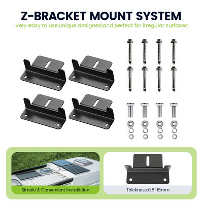 কিটে অন্তর্ভুক্ত ফিক্সড মাউন্টিং বিকল্পগুলির সাথে ইনস্টলেশন সহজ। এই মাউন্টিং সমাধানগুলি আপনার RV-এর ছাদে বা অন্য কোনো উপযুক্ত পৃষ্ঠে সোলার প্যানেলটিকে নিরাপদে সংযুক্ত করার জন্য ডিজাইন করা হয়েছে, যা সর্বোত্তম সূর্যের আলো এবং সর্বাধিক শক্তি শোষণ নিশ্চিত করে। ফিক্সড মাউন্টিং বিকল্পগুলি ভ্রমণের সময় স্থিতিশীলতা এবং নিরাপত্তা প্রদান করে, যা নড়াচড়া বা কম্পনের কারণে সোলার প্যানেলের কোনো ক্ষতি হওয়া থেকে বাঁচায়। যারা ঘন ঘন রাস্তাঘাটে যান এবং একটি টেকসই, দীর্ঘস্থায়ী সৌর সিস্টেম চান যা ভ্রমণের কঠোরতা সহ্য করতে পারে তাদের জন্য এই বৈশিষ্ট্যটি বিশেষভাবে মূল্যবান।